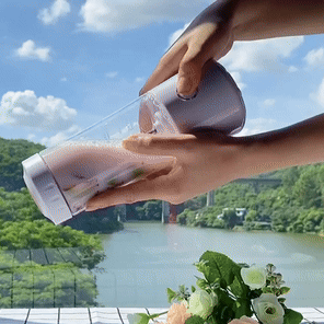 Alright, let me tell you about this awesome new gadget I got - a portable juicer. Man, it's an absolute game changer! You know those crazy busy mornings when you barely have time to scarf down a piece of toast? Well, say goodbye to them because this little beauty is here to save the. First off, it's super quick. I mean blink-and-you'll-miss-it kind of quick It takes no time at all for my favorite fruits and veggies to be transformed into a refreshing juice that kickstarts my day right. No waiting around for ages like with some other juicers out there! Now let's talk efficiency. This compact powerhouse doesn't mess around when it comes to getting every last drop of goodness from your produce. It squeezes out every bit so nothing goes to waste which is perfect if you're trying not only save money but also get the most nutritional bang for your buck. But what really makes this portable juicer shine is how ideal it is for single servings. There’s no need anymore for making more than needed and then having leftovers go bad in the fridge or worse still having none left when you want another glass later in the day! Just pop in enough ingredients for one serving and voila – fresh juice ready just for me without any fuss or hassle. So yeah, if you’re someone who values convenience as much as nutrition especially on those hectic mornings then trust me when I say that this little gem is definitely worth checking out! It’s become such an essential part of my morning routine now that honestly, I can’t imagine starting my day without it.